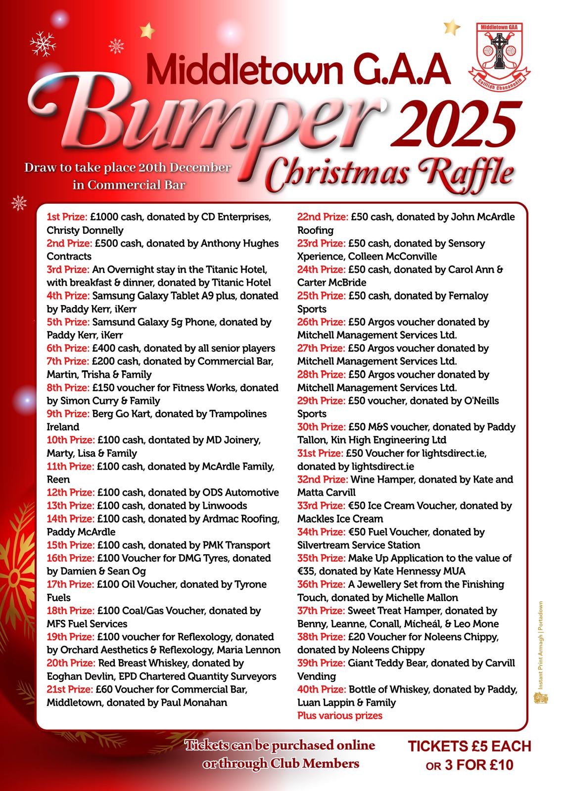 Our Christmas Raffle is back…… Fantastick prizes to be won