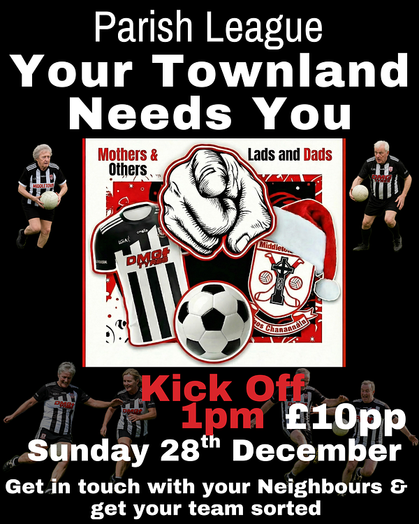 Lads & Dads and Mothers & Others will go head-to-head with their townland rivals, battling it out to see which townland will be crowned Parish League Champions.
